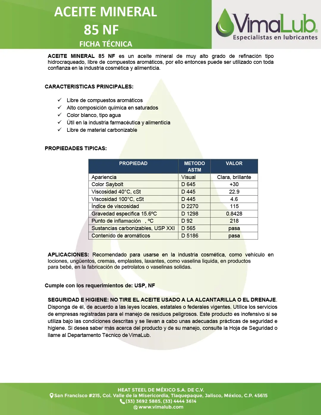 Aceite Mineral NF-85 de VimaLub especialmente formulado para aplicaciones industriales que requieren un lubricante base confiable y estable. Ofrece buena capacidad de lubricación, resistencia a la oxidación y protección contra el desgaste y la corrosión en una amplia variedad de sistemas.