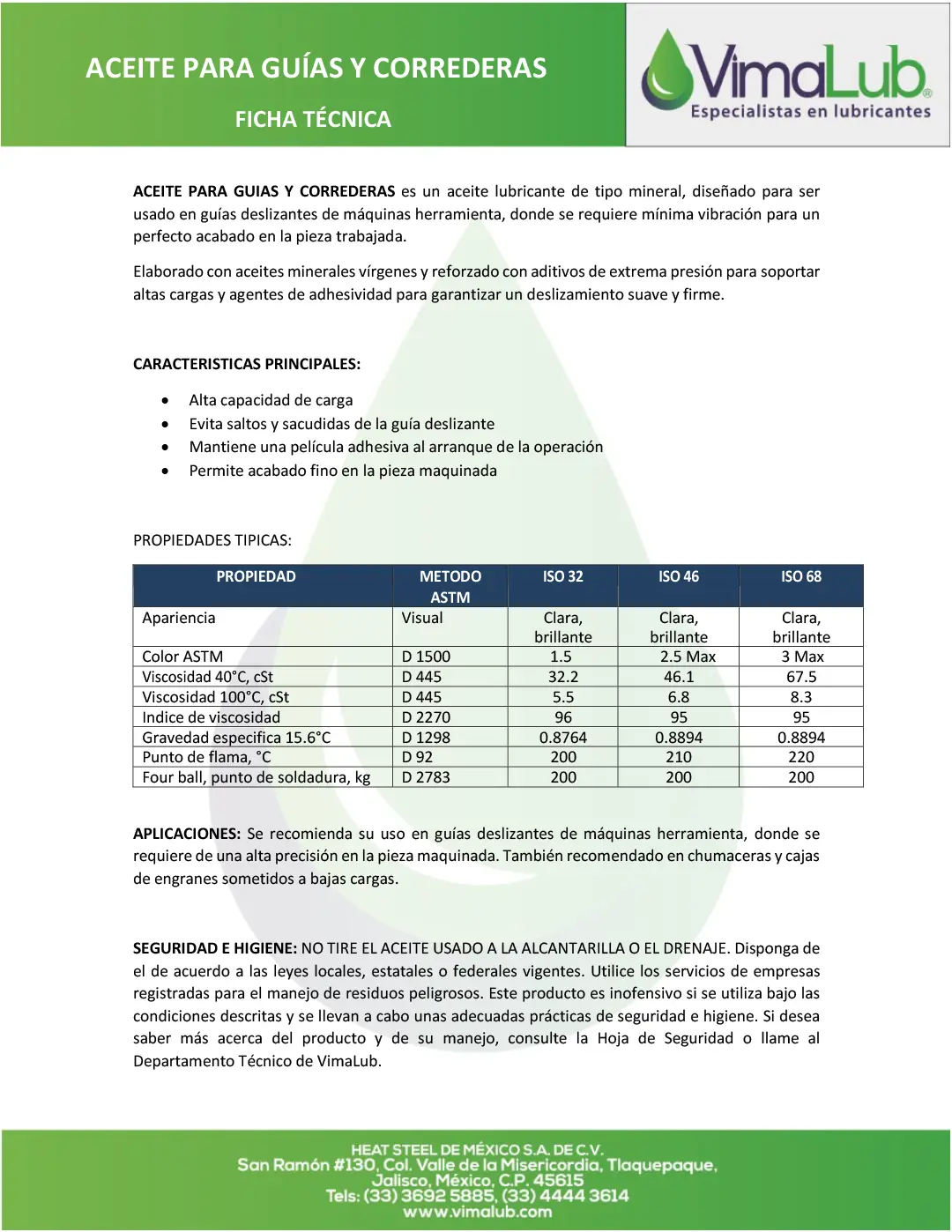 Viscosidad ISO 68 para un óptimo desempeño en guías y correderas.
